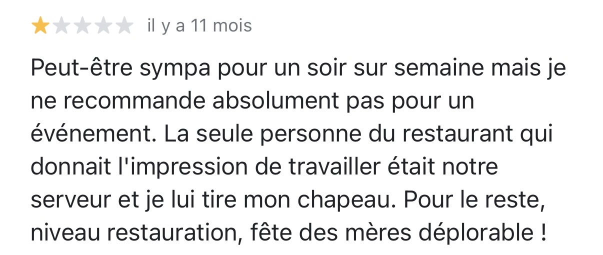 Depuis que nous avons opté pour happyresto je me préoccupe plus des avis. Et cela me fait économiser énormément de temps!